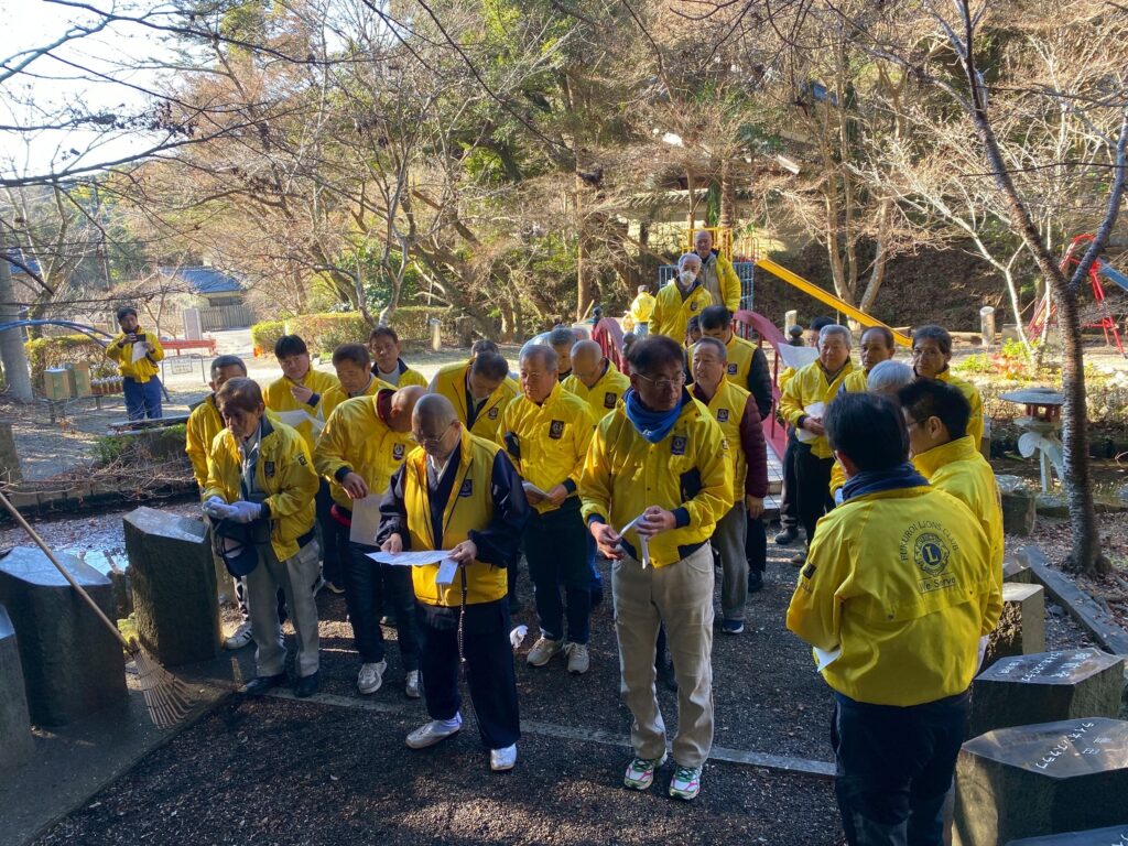 12月29日(月)献眼者の御霊を祀る油山寺の合同慰霊碑周辺の清掃活動にメンバー32名が参加した。